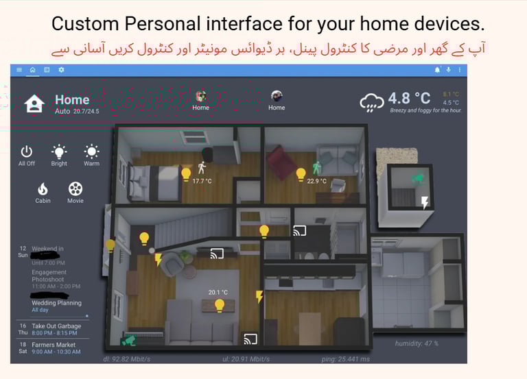 Customize interface according to your home plan, easy to monitor and control devices, task to do, tracking of children, weather alerts etc
